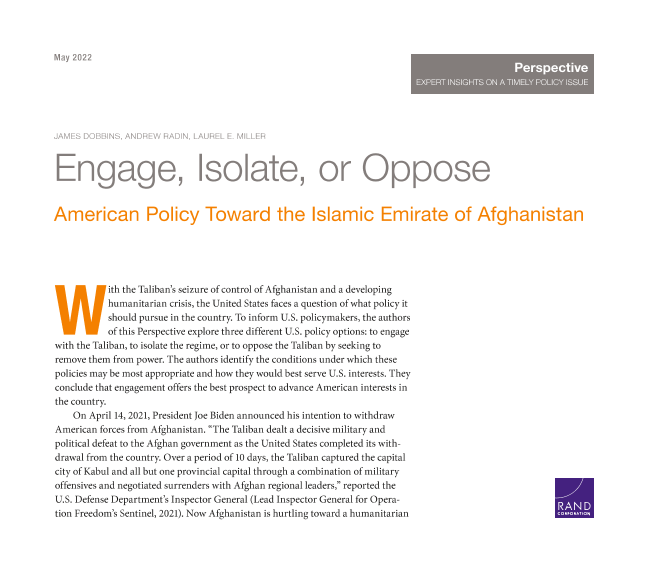 【兰德公司】【20220501】参与、孤立或反对-美国对阿富汗伊斯兰酋长国的政策-28页