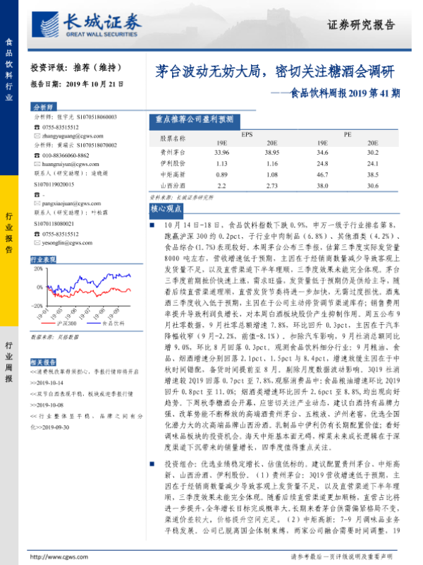 【长城证券】【20191021】食品饮料周报2019第41期:茅台波动无妨大局,密切关注糖酒会调研-16页