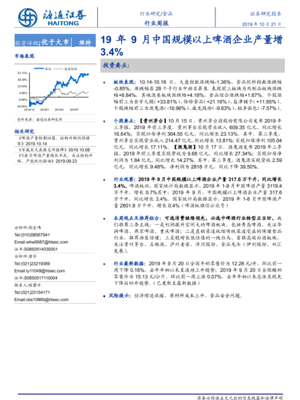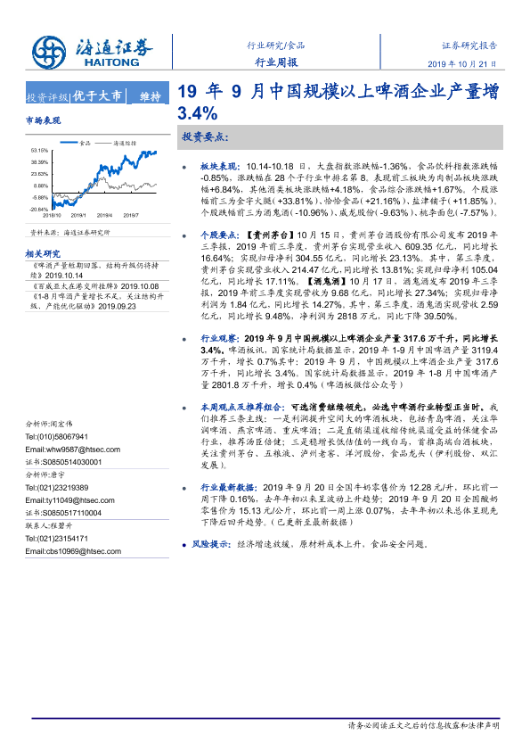 【海通证券】【20191021】20191021-海通证券-食品行业周报:19年9月中国规模以上啤酒企业产量增3.4%-11页