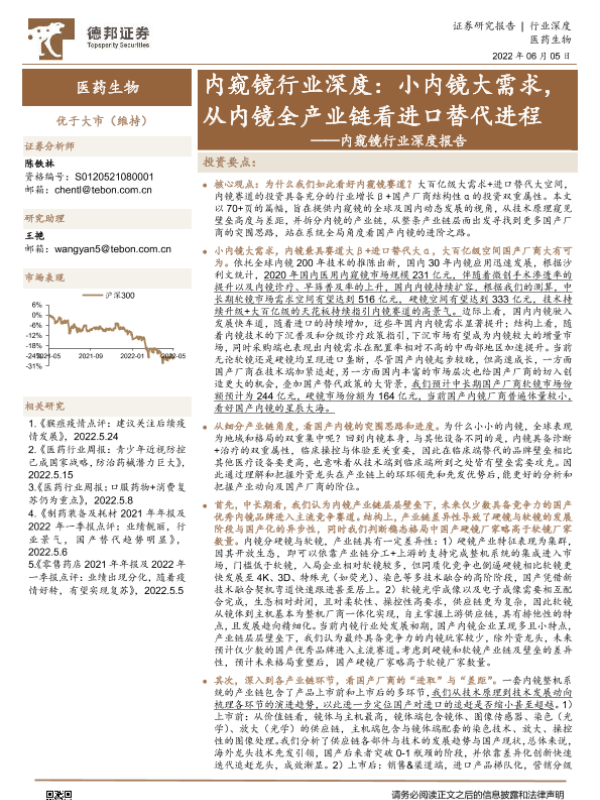 【德邦证券】【20220605】内窥镜行业深度:小内镜大需求,从内镜全产业链看进口替代进程-71页
