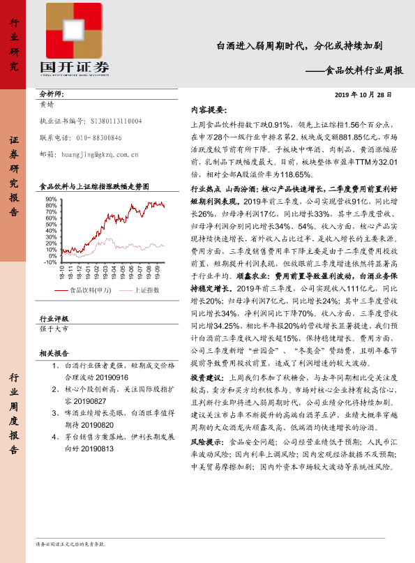 【国开证券】【20191028】食品饮料行业周报:白酒进入弱周期时代,分化或持续加剧-9页