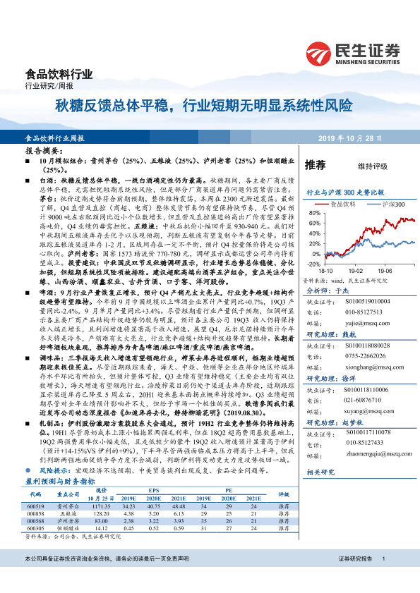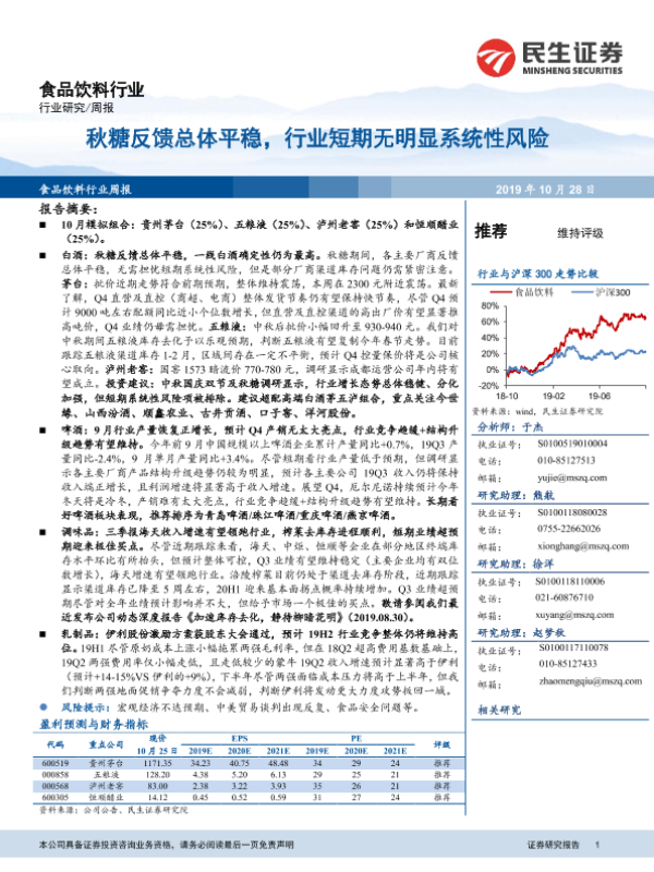 【民生证券】【20191028】食品饮料行业周报:秋糖反馈总体平稳,行业短期无明显系统性风险-29页