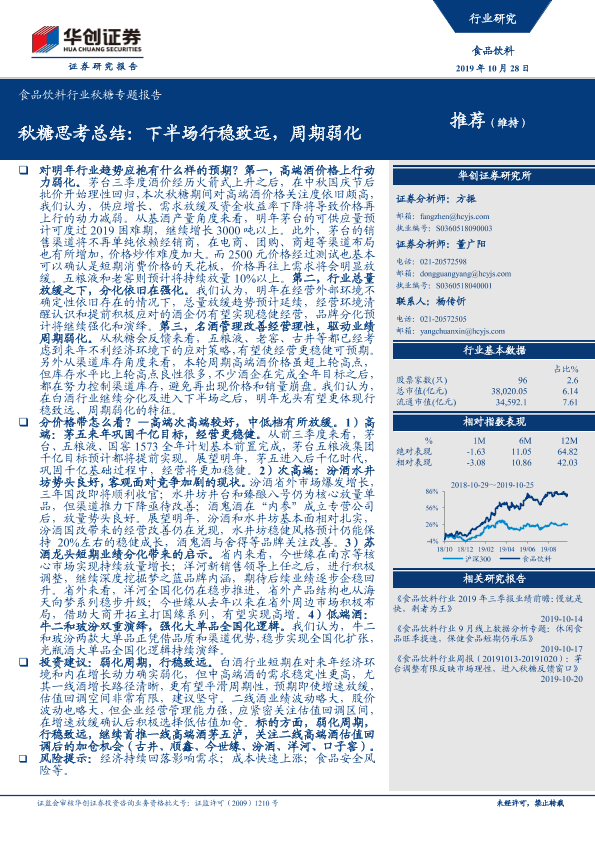 【华创证券】【20191028】食品饮料行业秋糖专题报告:秋糖思考总结:下半场行稳致远,周期弱化-14页