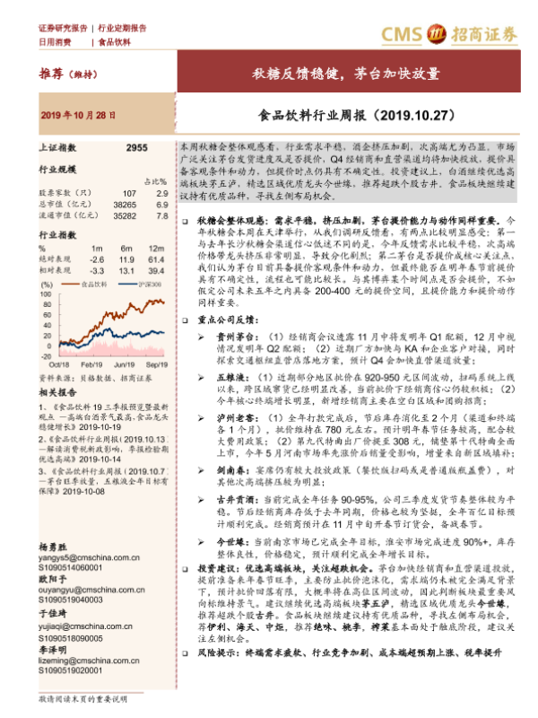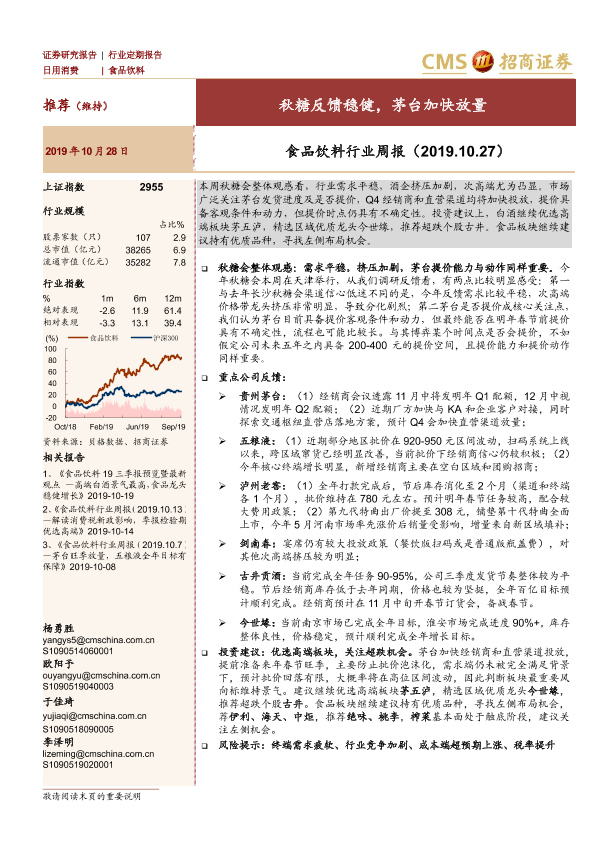 【海通证券】【20191028】食品饮料行业周报:秋糖反馈稳健,茅台加快放量-8页