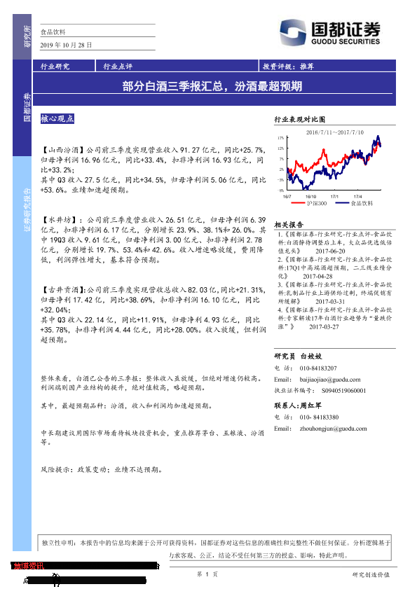 【国都证券】【20191028】食品饮料行业点评:部分白酒三季报汇总,汾酒最超预期-2页