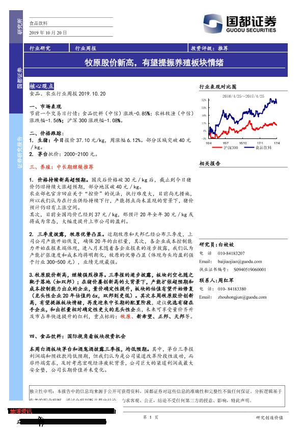 【国都证券】【20191020】20191020-国都证券-食品饮料行业周报:牧原股价新高,有望提振养殖板块情绪-3页