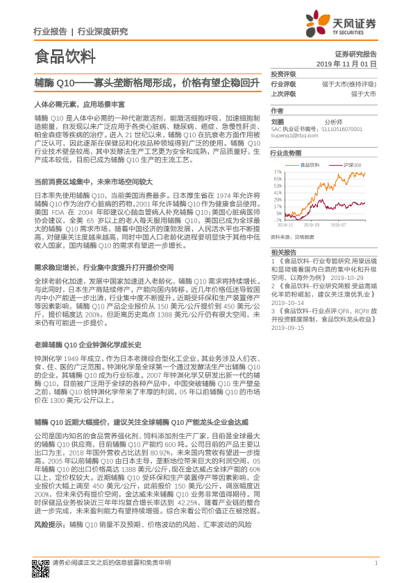 【天风证券】【20191101】食品饮料:辅酶Q10——寡头垄断格局形成,价格有望企稳回升-14页