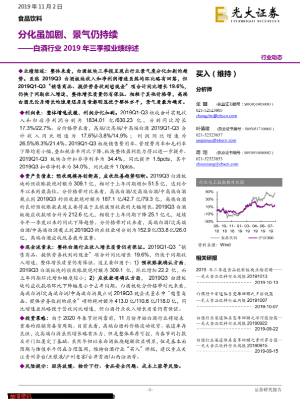 【光大证券】【20191102】白酒行业2019年三季报业绩综述:分化虽加剧、景气仍持续-21页