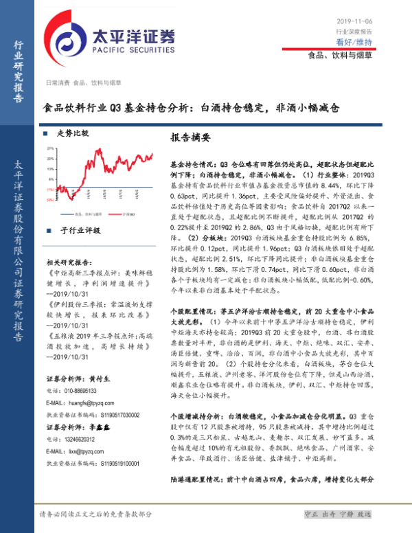【太平洋证券】【20191106】食品饮料行业Q3基金持仓分析:白酒持仓稳定,非酒小幅减仓-15页