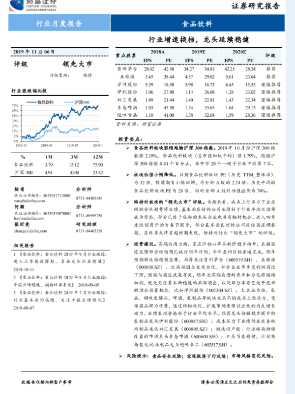 【财信证券】【20191106】食品饮料:行业增速换挡,龙头延续稳健-11页