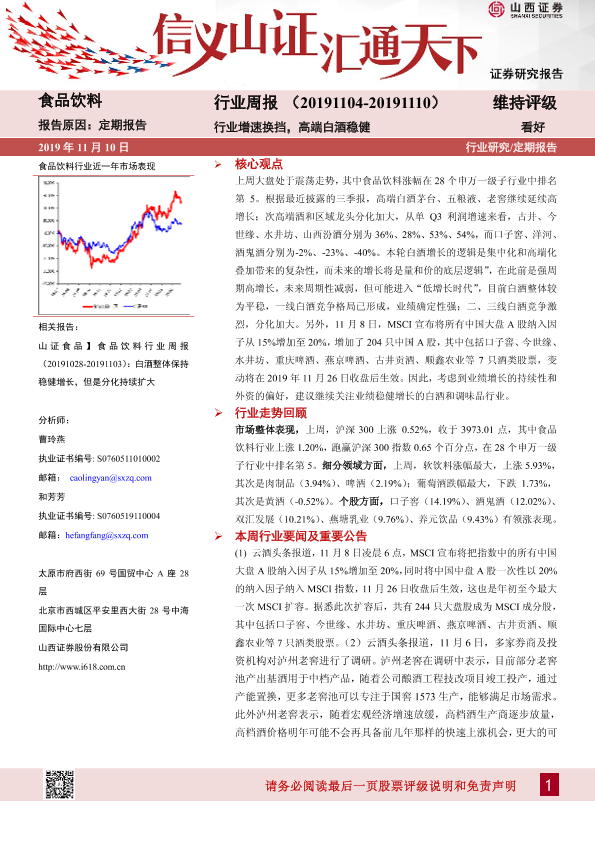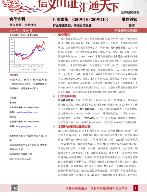 【山西证券】【20191110】食品饮料行业周报:行业增速换挡,高端白酒稳健-10页