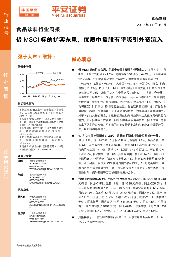 【平安证券】【20191110】食品饮料行业周报:借MSCI标的扩容东风,优质中盘股有望吸引外资流入-6页
