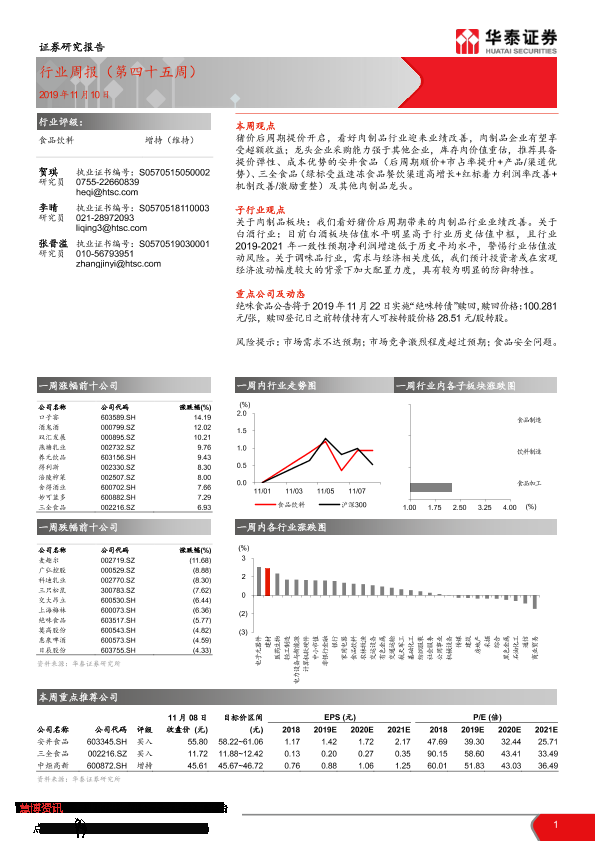 【华泰证券】【20191110】20191110-华泰证券-食品饮料行业周报(第四十五周)-7页