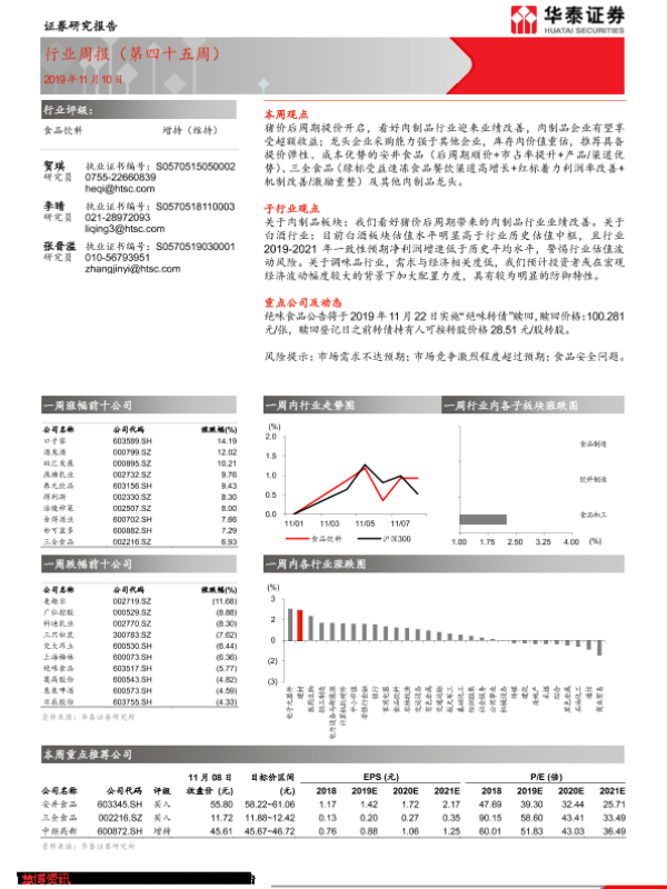 白酒行业 肉制品行业 行业周报 证券分析 食品饮料