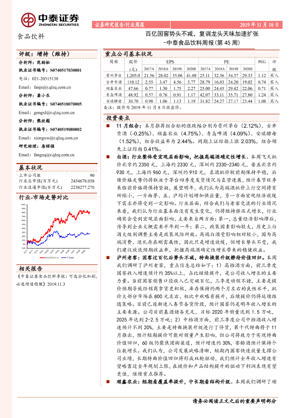 【中泰证券】【20191110】中泰食品饮料周报(第45周):百亿国窖势头不减,复调龙头天味加速扩张-11页