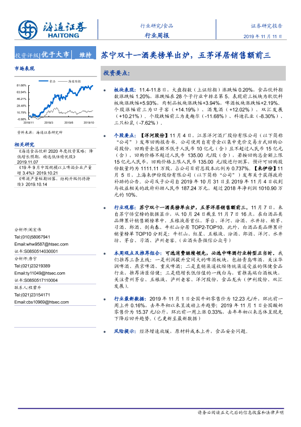 【海通证券】【20191111】20191111-海通证券-食品行业周报:苏宁双十一酒类榜单出炉,五茅洋居销售额前三-11页