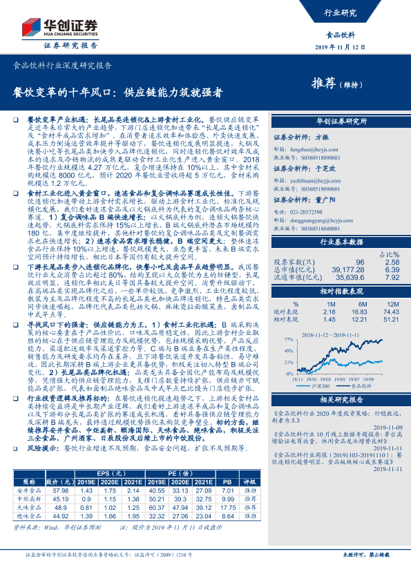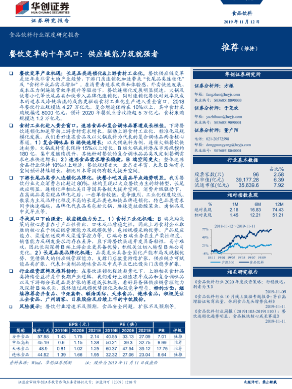 【华创证券】【20191112】食品饮料行业深度研究报告:餐饮变革的十年风口:供应链能力筑就强者-45页