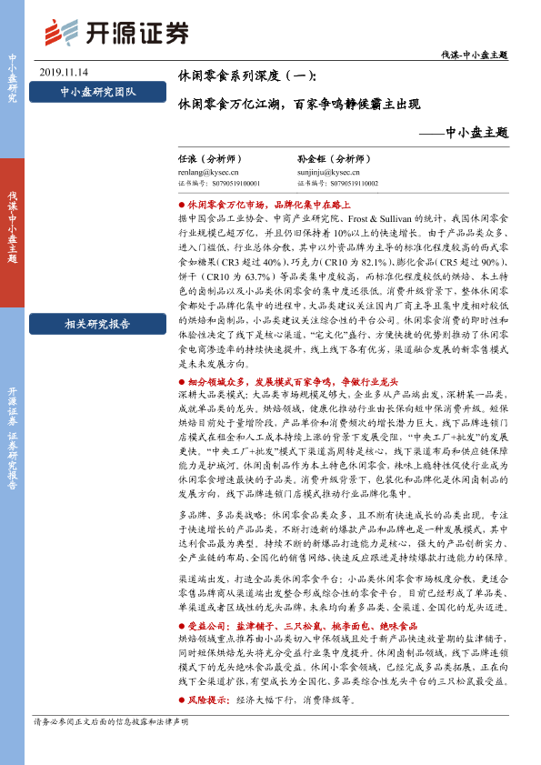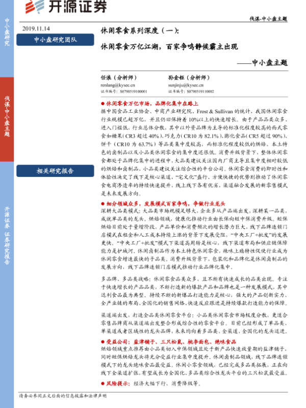 【开源证券】【20191114】休闲零食系列深度(一):休闲零食万亿江湖,百家争鸣静候霸主出现-22页