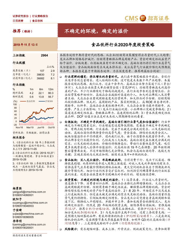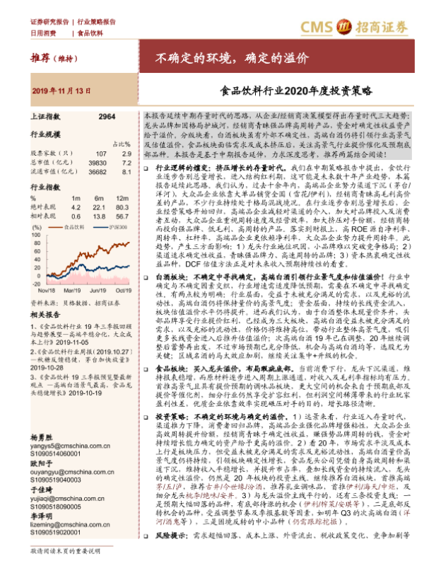 【海通证券】【20191113】食品饮料行业2020年度投资策略:不确定的环境,确定的溢价-37页