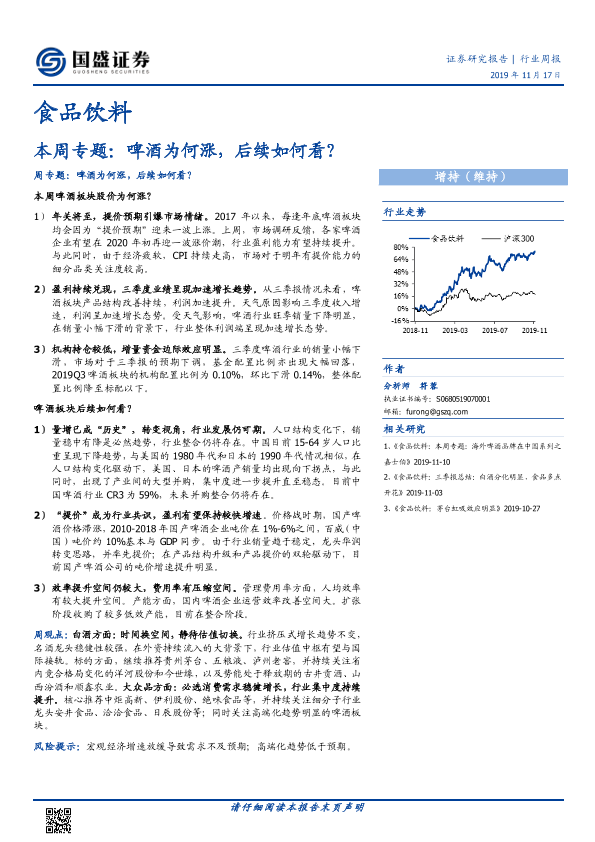 【国盛证券】【20191117】20191117-国盛证券-食品饮料本周专题:啤酒为何涨,后续如何看?-29页