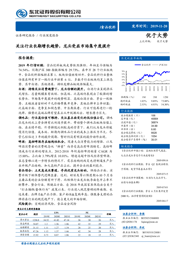 【东北证券】【20191120】食品饮料行业深度报告:关注行业长期增长趋势,龙头受益市场集中度提升-36页