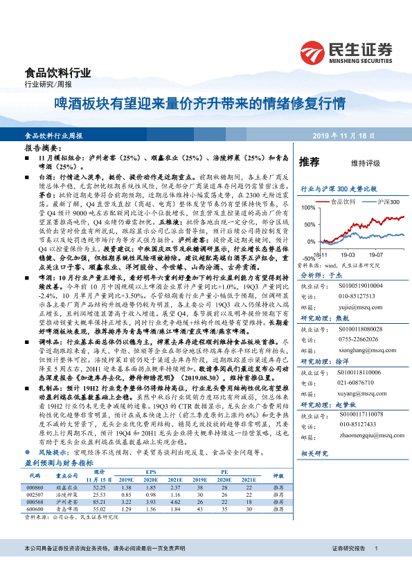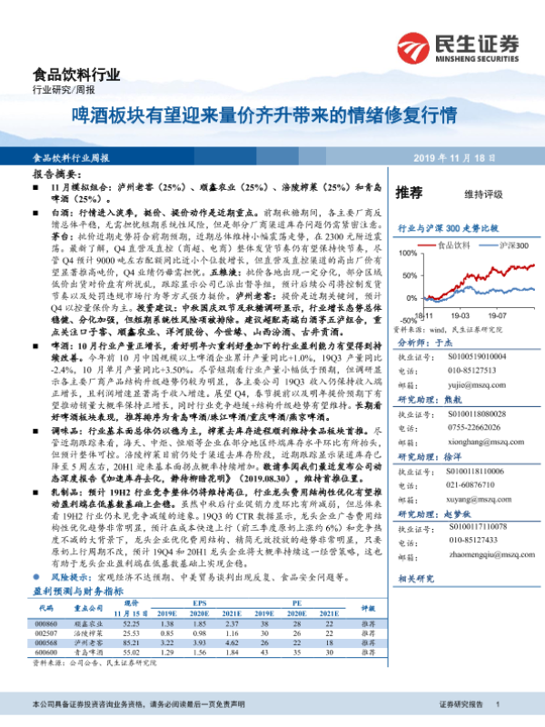 【民生证券】【20191118】食品饮料行业周报:啤酒板块有望迎来量价齐升带来的情绪修复行情-21页
