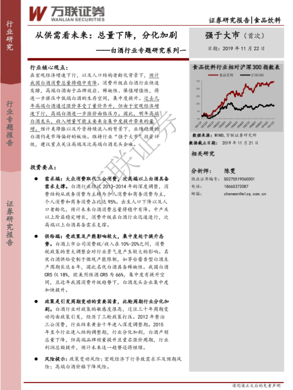 【万联证券】【20191122】20191122-万联证券-白酒行业专题研究系列一:从供需看未来——总量下降,分化加剧-26页
