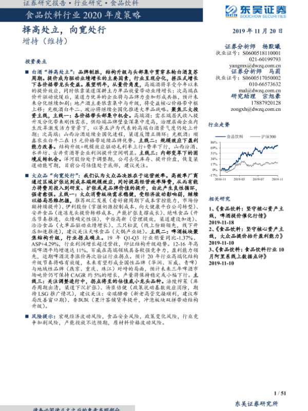 【东吴证券】【20191120】食品饮料行业2020年度策略:择高处立,向宽处行-51页