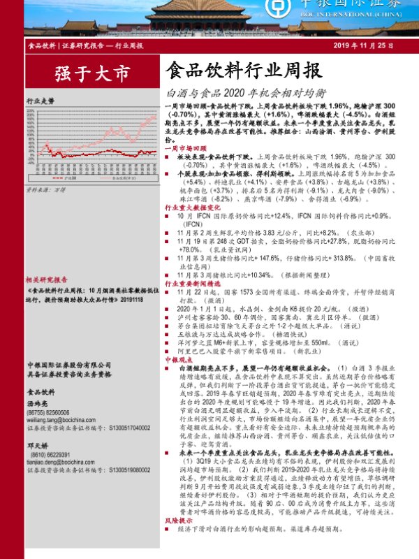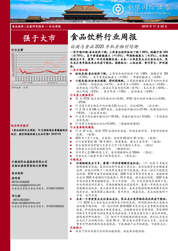 【中银证券】【20191125】食品饮料行业周报:白酒与食品2020年机会相对均衡-15页