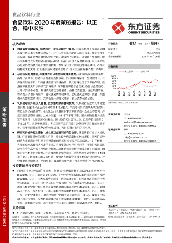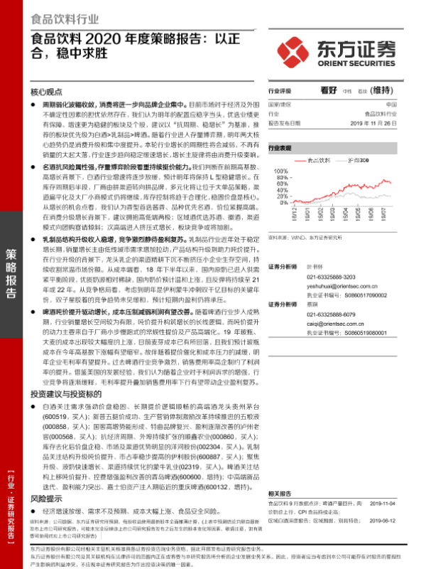 【东方证券】【20191126】食品饮料2020年度策略报告:以正合,稳中求胜-33页