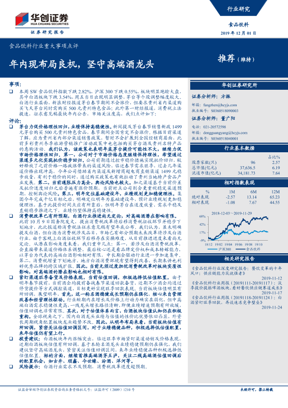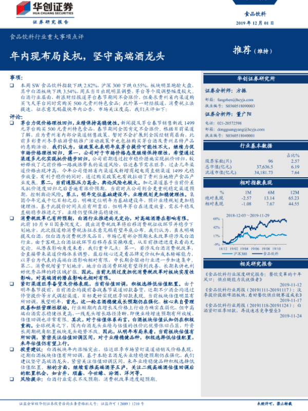 【华创证券】【20191201】食品饮料行业重大事项点评:年内现布局良机,坚守高端酒龙头-4页