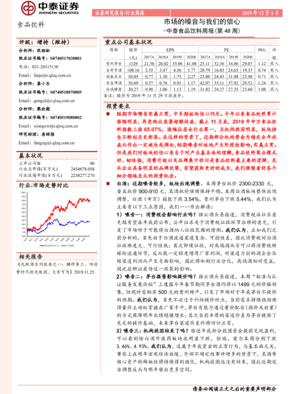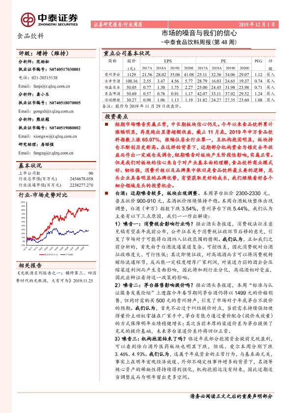 【中泰证券】【20191201】中泰食品饮料周报(第48周):市场的噪音与我们的信心-9页