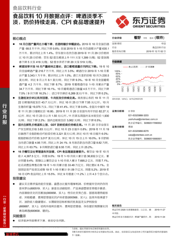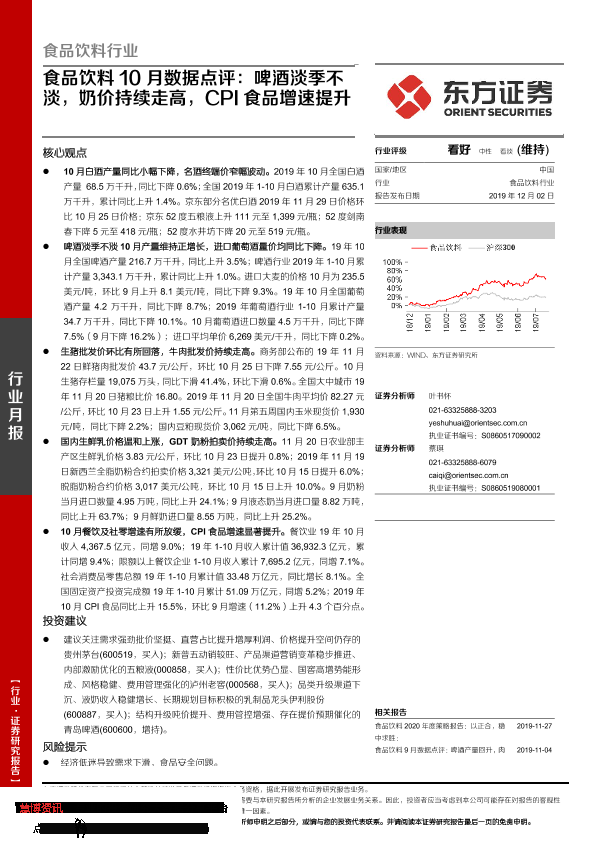 【东方证券】【20191202】食品饮料10月数据点评:啤酒淡季不淡,奶价持续走高,CPI食品增速提升-14页