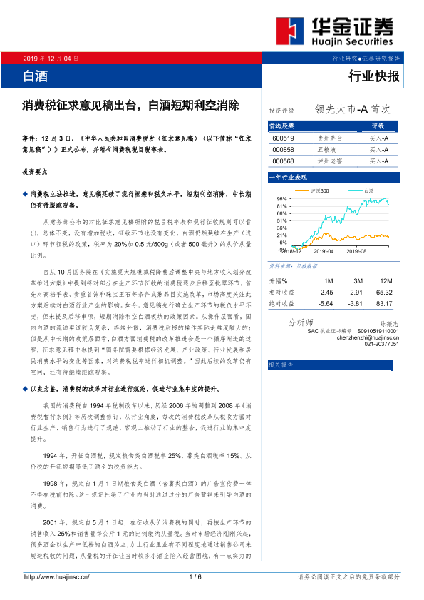 【华金证券】【20191204】白酒:消费税征求意见稿出台,白酒短期利空消除-6页