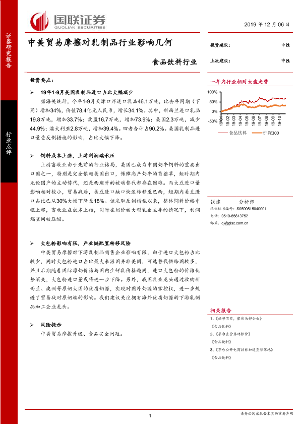 【国联证券】【20191206】食品饮料行业:中美贸易摩擦对乳制品行业影响几何-7页