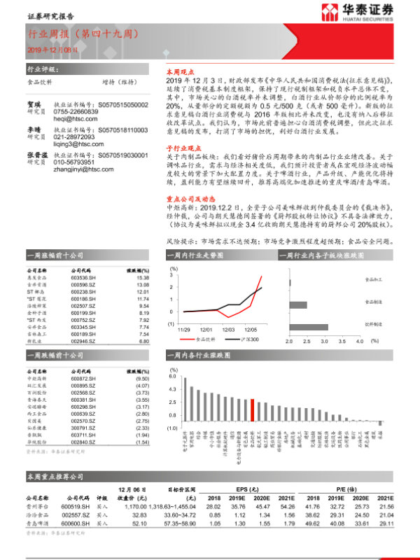 【华泰证券】【20191208】20191208-华泰证券-食品饮料行业周报(第四十九周)-8页