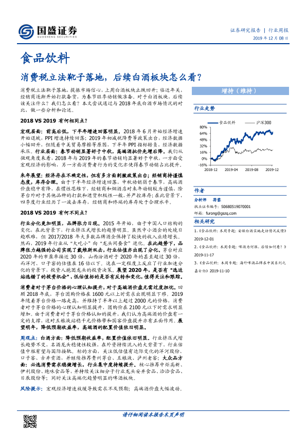 【国盛证券】【20191208】食品饮料行业周报:消费税立法靴子落地,后续白酒板块怎么看?-30页