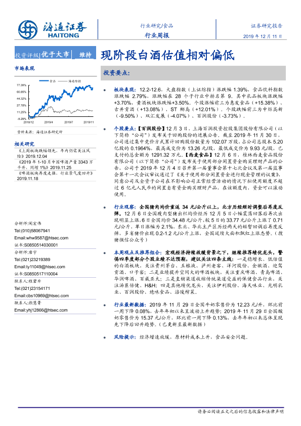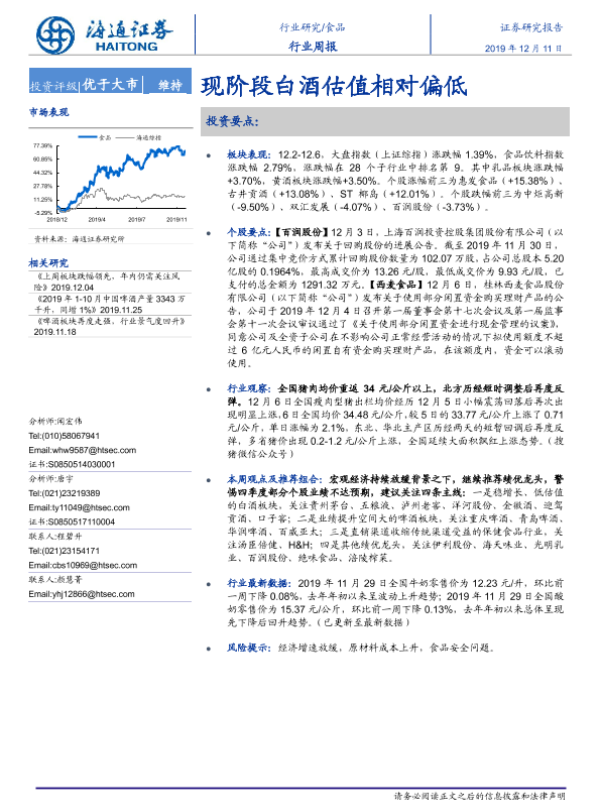 【海通证券】【20191211】20191211-海通证券-食品行业周报:现阶段白酒估值相对偏低-12页