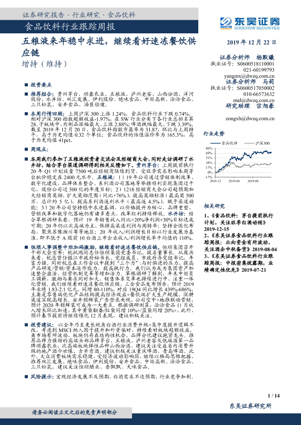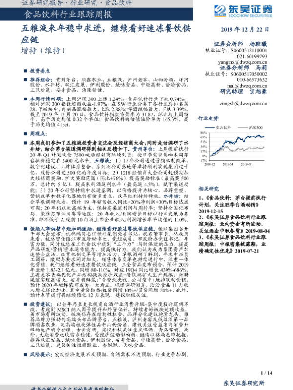【东吴证券】【20191222】食品饮料行业跟踪周报:五粮液来年稳中求进,继续看好速冻餐饮供应链-14页