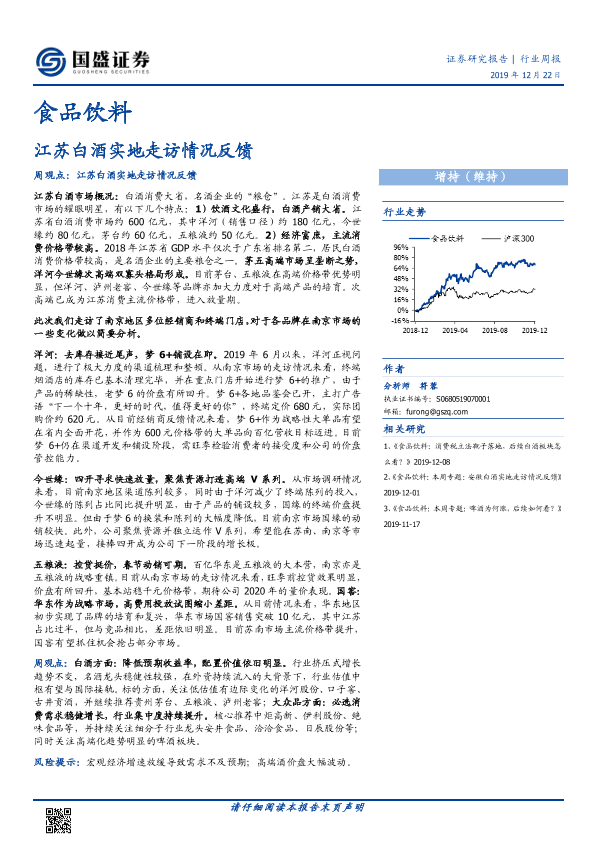 【国盛证券】【20191222】食品饮料行业周报:江苏白酒实地走访情况反馈-27页