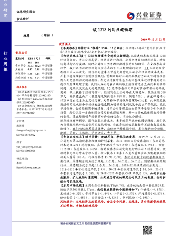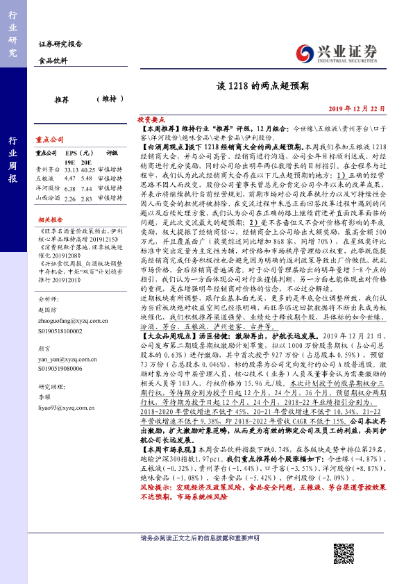 【兴业证券】【20191222】20191222-兴业证券-食品饮料行业周报:谈1218的两点超预期-15页
