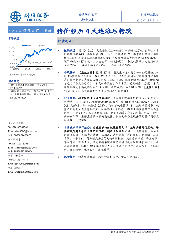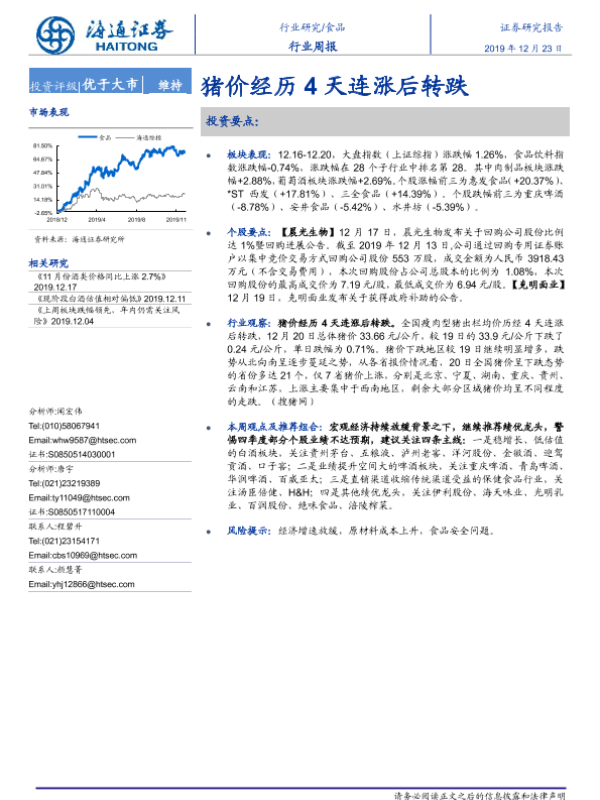 【海通证券】【20191223】20191223-海通证券-食品行业周报:猪价经历4天连涨后转跌-10页