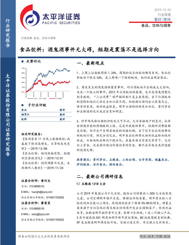 【太平洋证券】【20191223】食品饮料行业周报:酒鬼酒事件无大碍,短期是震荡不是选择方向-7页