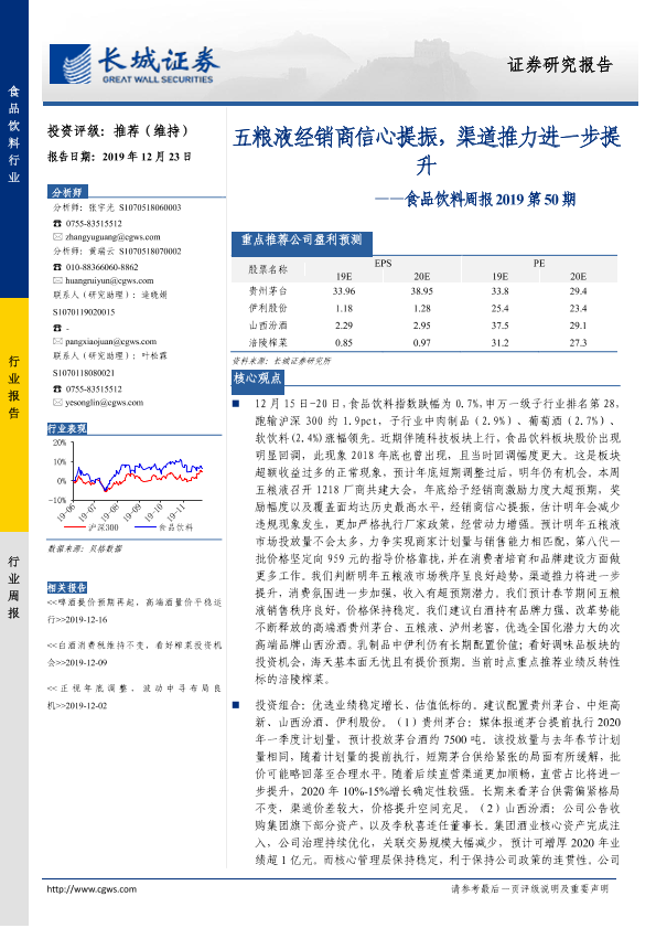 【长城证券】【20191223】食品饮料周报2019第50期:五粮液经销商信心提振,渠道推力进一步提升-11页