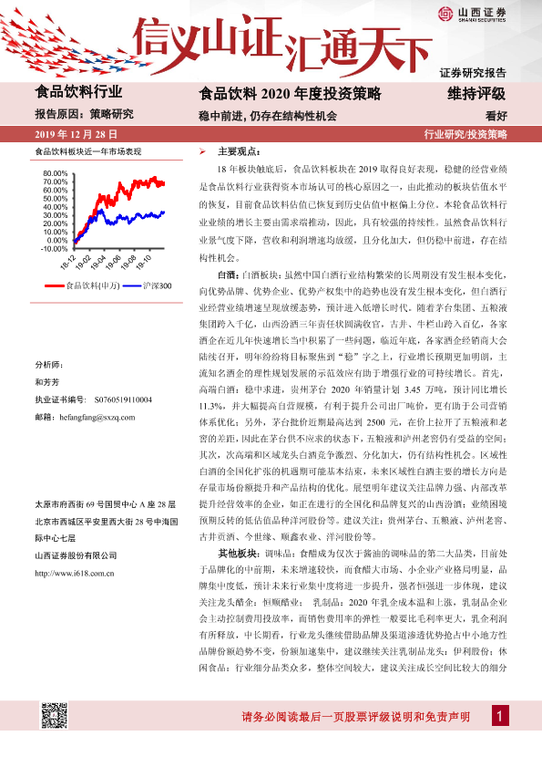 【山西证券】【20191228】食品饮料2020年度投资策略:稳中前进,仍存在结构性机会-32页