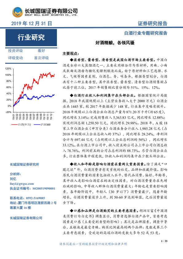 【长城国瑞证券】【20191231】20191231-长城国瑞证券-白酒行业专题研究报告:好酒精酿,各领风骚-35页