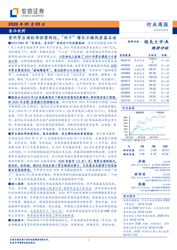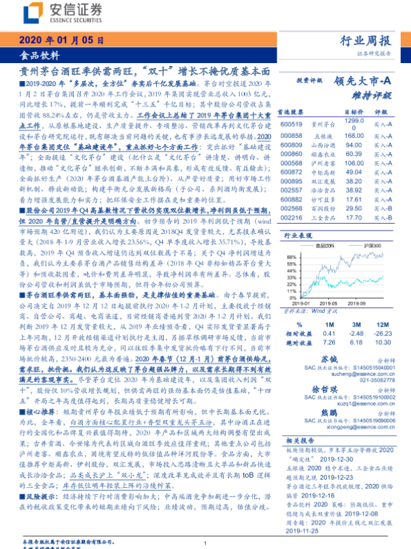 【安信证券】【20200105】20200105-安信证券-食品饮料行业周报:贵州茅台酒旺季供需两旺,“双十”增长不掩优质基本面-22页