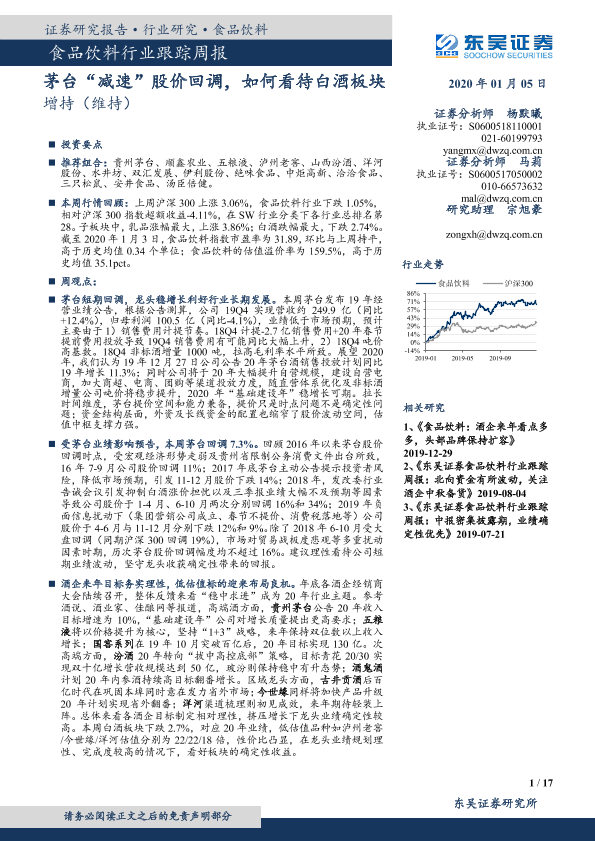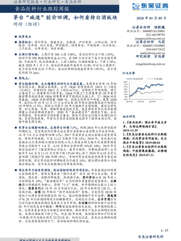 【东吴证券】【20200105】20200105-东吴证券-食品饮料行业跟踪周报:茅台“减速”股价回调,如何看待白酒板块-17页