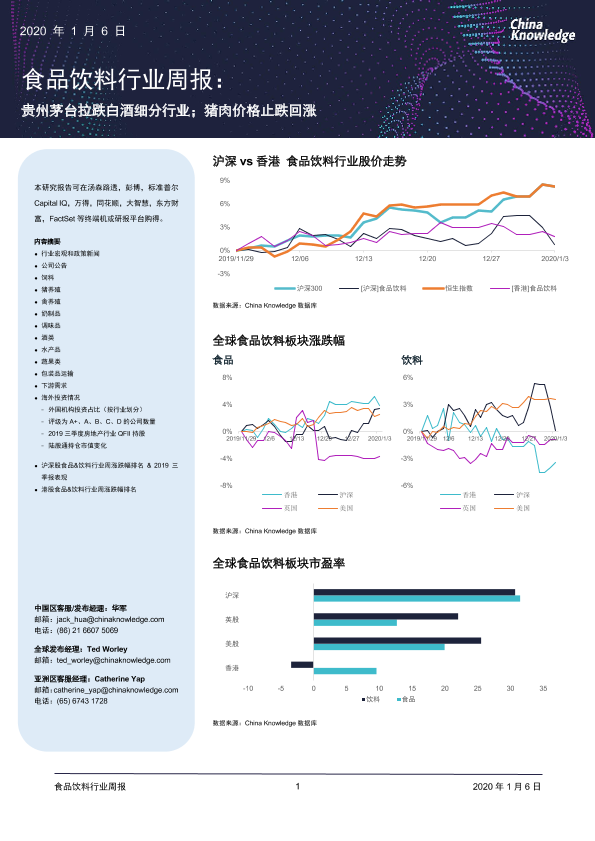 【China Knowledge】【20200106】食品饮料行业周报:贵州茅台拉跌白酒细分行业;猪肉价格止跌回涨-26页