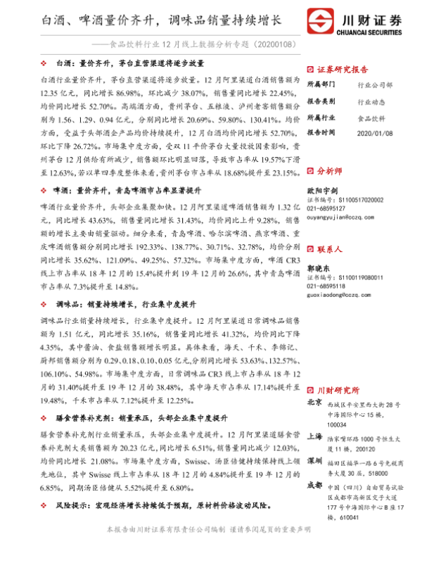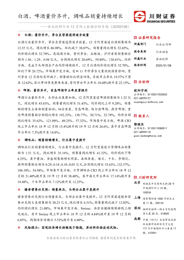啤酒 市场分析 白酒 线上销售 调味品